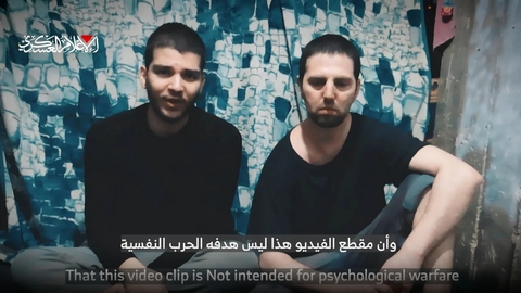 نشرت كتائب القسام، الجناح العسكري لحركة حماس، في حسابها عبر تيلغرام، فيديو لأسيرين إسرائيليين لديها، تحت عنوان: “أخبرهم يا أوهاد!”.