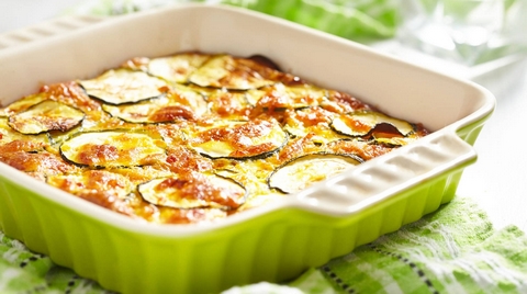 نخفق بالشوكة البيض مع الكريمة والجبن المبشور مع القليل من الملح والفلفل الأسود ونمزجهم مع البصل والكوسة ونضعهم بصحن يدخل الفرن مدهون مسبقا بالزبدة ونتركهم يتجمروا ويأخذوا اللون الذهبي من الأعلى.