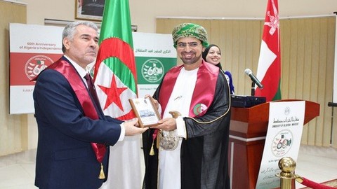 وقال السيد غويني، في تصريح إعلامي خلال احتفالية نظمت بمقر السفارة بالعاصمة مسقط، بأن فعاليات الاحتفال بالذكرى الـ68 لاندلاع ثورة الفاتح نوفمبر هذا العام بحرص ورعاية سامية من الرئيس تبون، ستعزز ارتباط الجزائريين والجزائريات بالذاكرة الوطنية بشكل أقوى، من خلال نشاطات ضخمة ومتميزة على كل المستويات تشمل جميع القطاعات بما يكرس ارتباط الخلف بمآثر السلف وحرص الجزائر الجديدة على حفظ وصون ملف الذاكرة من خلال ربط أجيال الاستقلال لتاريخ وطنهم المشرف وحثهم على الوفاء لرسالة الشهداء ويأتي هذا كله –يضيف السفير– في الوقت الذي تشهد فيه الجزائر طورا جديدا في مسارها الحافل، وفصلا جديدا من الإصلاحات قوامها ترسيخ دولة الحق والقانون والحريات، وتثبيت قيم العدالة وضمان الحقوق المدنية والسياسية للمجتمع الجزائري بأكمله، في ظل تنمية عادلة ومتوازنة، وتطلع إلى استيفاء العام 2022، بتعزيز دعائم التنمية الشاملة وتحقيق الإقلاع الاقتصادي الحقيقي. وعن العلاقات الجزائرية العمانية، فقد وصفها السفير الجزائر بالقوية والتاريخية، مشيرا إلى أنها تشهد حركية ملحوظة في الآونة الأخيرة من خلال نمو تبادل الزيارات والوفود رفيعة المستوى يشار إلى أن فعاليات إحياء الذكرى الـ68 لعيد اندلاع الثورة بمسقط، ميزها حضور واسع للجالية الوطنية بالسلطنة ووزراء في الحكومة العمانية وأعضاء من مجلس عمان ونخبة من رجال الأعمال والوجهاء والمثقفين والإعلاميين وأعضاء السلك الدبلوماسي المعتمد بالسلطنة.