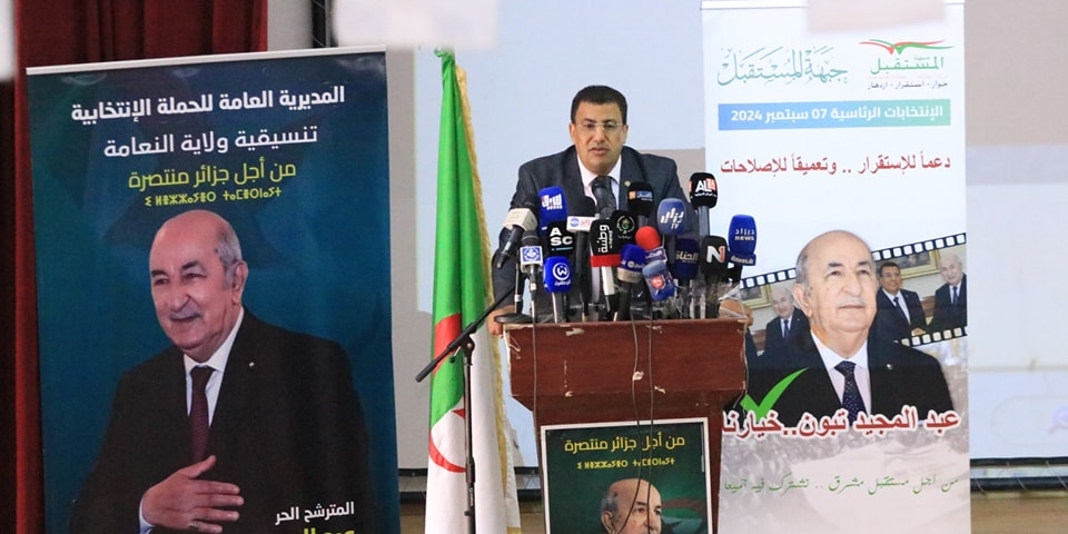 وأوضح السيد بوطبيق خلال تجمع شعبي نشطه بقاعة سينما “الأمل” بمدينة مشرية في إطار الحملة الانتخابية للرئاسيات المقبلة، أن المترشح الحر السيد عبد المجيد تبون، يحمل رؤية استراتيجية واضحة تعتمد على مواصلة تحقيق المؤشرات المالية والاقتصادية الإيجابية والرفع من نسبة نمو الاقتصاد الوطني، وأضاف أن السيد عبد المجيد تبون يعول على إعادة الثقة في شباب الجزائر وذوي الكفاءات العلمية لمواصلة الخطوات الكبيرة التي تم تحقيقها خلال عهدته الرئاسية الأولى لبناء اقتصاد قوي وتجسيد مختلف المشاريع المهيكلة كإنتاج الحديد ومختلف الموارد المنجمية وتحلية مياه البحر وخلق أقطاب للزراعات الاستراتيجية وبناء منشآت رياضية ومستشفيات كبرى وغيرها. وذكر ذات المتحدث، بمختلف محاور البرنامج الانتخابي للمترشح الحر، السيد عبد المجيد تبون، مشيرا إلى الإنجازات الدبلوماسية التي حققتها الجزائر وحضورها في المحافل الدولية خلال السنوات الأخير.