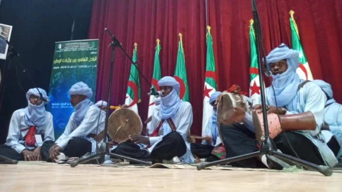 وتشكل هذه التظاهرة، التي أشرف على افتتاحها والي النعامة لوناس بوزقزة، جسرا للتواصل الثقافي بمشاركة نخبة من الفنانين والحرفيين والشعراء والأدباء، وفرصة للتعريف بتراث هذه الولاية من الجنوب الكبير للوطن، وما تزخر به من رصيد ثقافي متنوع لا سيما على مستوى الحظيرة الوطنية الثقافية للأهقار التي تصنف من أكبر المتاحف المفتوحة على الطبيعة في العالم، كما أبرزت مديرية الثقافة والفنون للنعامة. وأبرز رئيس الوفد الثقافي لتمنراست حساني محمد الأمين أن محتوى برنامج هذا الأسبوع الثقافي، الذي ينظم تحت شعار “ثقافتنا توحدنا والجزائر تجمعنا”، متنوع وثري، ويشتمل على عدة أنشطة تراثية وفنية من بينها تنظيم معرض الخيمة التارقية ببهو دار الثقافة للنعامة. ويتيح هذا المعرض التعريف بالوجهة السياحية لولاية تمنراست، من خلال مجسمات ولوحات فنية وصور فوتوغرافية تبرز جمال جبال الأهقار والأسكرام وأبالسة وضريح الملكة تن هينان وغيرها. ويمكّن المعرض جمهور النعامة من التعرف على عديد التحف الفنية والتقليدية لمنطقة تمنراست كتلك التي تصنع من مادة الجلد والحلي المصنوع من الفضة ولباس المرأة التارقية والأكلات الشعبية وآلات الموسيقى التراثية كآلتي الإيقاع “أمزاد” والعزف “تزمارت” وغيرها، فضلا عن تقديم استعراضات فولكلورية لفرقة البارود ورقصة “التيندي” الشهيرة.