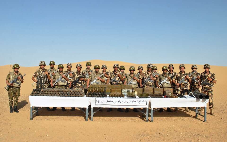 وأوضح البيان، أنه في إطار مكافحة الإرهاب وبفضل استغلال المعلومات، كشفت مفرزة للجيش الوطني الشعبي، يوم 20 جوان 2019 إثر دورية بحث وتفتيش قرب الشريط الحدودي ببرج باجي مختار بالناحية العسكرية السادسة، مخبأ للأسلحة والذخيرة.