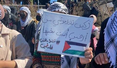 وتأتي التظاهرة تزامنا مع انعقاد جلسة حكومة الاحتلال الأسبوعية.