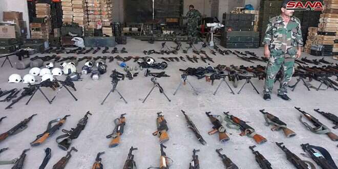 عثرت الجهات المختصة خلال استكمال أعمال تأمين المناطق التي جررها الجيش السوري من الإرهاب في المنطقة الجنوبية على كميات كبيرة من الأسلحة والذخائر بينها صواريخ أمريكية واسرائيلية الصنع تعكس حجم الدعم الذي تقدمه الدول الراعية للتنظيمات المسلحة.
