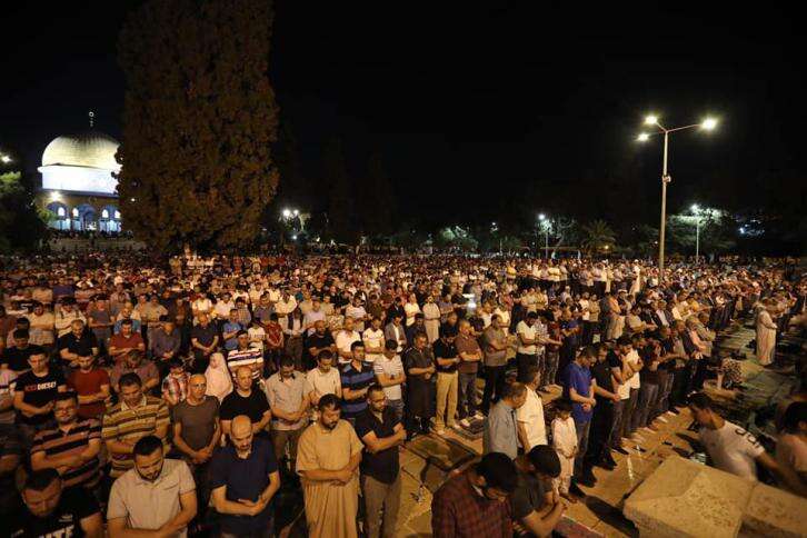 أدّى نحو 110 آلاف مُصلٍ من القدس المحتلة وخارجها، الخميس، صلاتي العشاء و”التراويح” في رحاب المسجد الأقصى المبارك، وسط استعدادات ضخمة للجمعة الثانية من شهر رمضان، حسب دائرة الأوقاف الإسلامية في القدس.