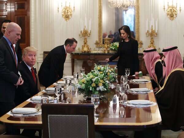 جاء هذا خلال مأدبة غداء، أقامها ترامب لولي العهد السعودي الأمير محمد بن سلمان والوفد المرافق له خلال زيارته إلى البيت الأبيض، الأربعاء.