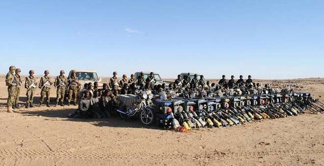 وأوضح المصدر ذاته أنه “في إطار محاربة الجريمة المنظمة، أوقفت مفارز للجيش الوطني الشعبي، يوم 09 فيفري 2019، إثر عمليات متفرقة بكل من تمنراست وعين قزام /ن.ع.6 وجانت/ن.ع.4، اثنين وتسعين (92) منقبا عن الذهب وضبطت ثلاث (03) شاحنات وأربع (04) مركبات رباعية الدفع و(21) دراجة نارية و(36) مولدا كهربائيا و(18) مطرقة ضغط و(22) جهاز كشف عن المعادن وأغراضا أخرى”.