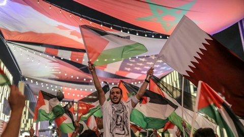 وشوهد العلم الفلسطيني مرفوعا في مدرجات استاد الخيمة خلال حفل افتتاح البطولة والمباراة الافتتاحية بين قطر والاكوادور من الجماهير الحاضرة، كما توشح العديد من الجماهير بالكوفية الفلسطينية، فيما لقي حجم الدعم والتأييد والتضامن مع القضية الفلسطينية خلال احتفالات كأس العالم، امتعاضا إسرائيليا.