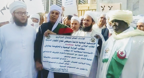الجزائر -نظم، الأربعاء، الأئمة وموظفو الشؤون الدينية المنضوين تحت لواء التنسيقية الوطنية للأئمة وموظفي الشؤون الدينية والأوقاف الجزائريين، وقفة احتجاجية أمام مقر المركزية النقابية بشارع عيسات إيدير، تبعتها مسيرة نحو وزارة العمل والتشغيل للمطالبة بتعديل قانونهم الأساسي ومراجعة نظام التعويضات وإعادة النظر في المنح والعلاوات.