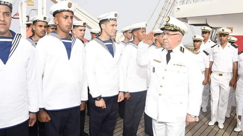 أشرف اللواء محفوظ بن مداح، قائد القوات البحرية، بالرصيف الشمالي للأميرالية القاعدة البحرية الجزائر بالناحية العسكرية الأولى، على تفتيش المفرزة البحرية المتكونة من السفينة المدرسة “الصومام” والسفينة الشراعية المدرسة “الملاح”.