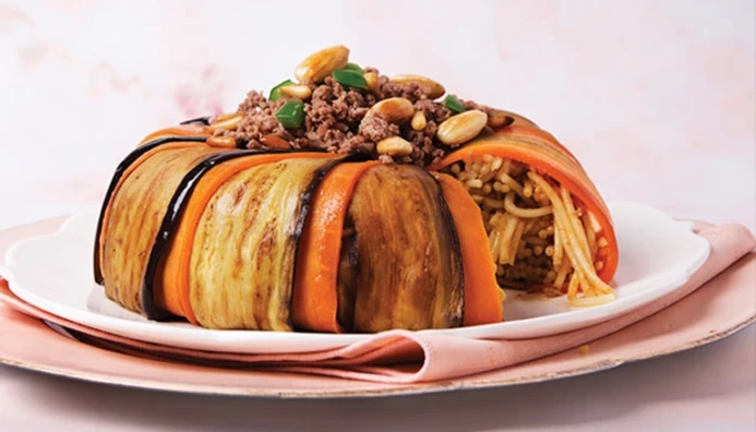 قالب مقلوبة معكرونة بالباذنجان