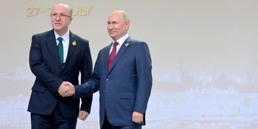 حضر الوزير الأول, السيد أيمن بن عبد الرحمان, الذي يمثل رئيس الجمهورية, السيد عبد المجيد تبون, في قمة روسيا-افريقيا و منتداها الاقتصادي و الإنساني, بسانت بطرسبرغ (روسيا) حفل الاستقبال الذي خص به الرئيس الروسي فلاديمير بوتين, مساء يوم الخميس, رؤساء وفود الدول المشاركة.