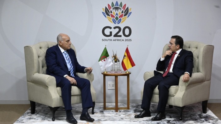 أجرى وزير الدولة, وزير الشؤون الخارجية والجالية الوطنية بالخارج والشؤون الإفريقية, السيد أحمد عطاف, اليوم السبت, محادثات ثنائية مع نظيره الإسباني, السيد خوسيه مانويل ألباريس, وذلك على هامش مشاركته في أشغال قمة مجموعة ال20 المنعقدة بجوهانسبورغ, يومي 22 و 23 نوفمبر 2025, ضمن الوفد الجزائري الذي يترأسه الوزير الأول, السيد سيفي غريب, وفق ما أفاد به بيان للوزارة.