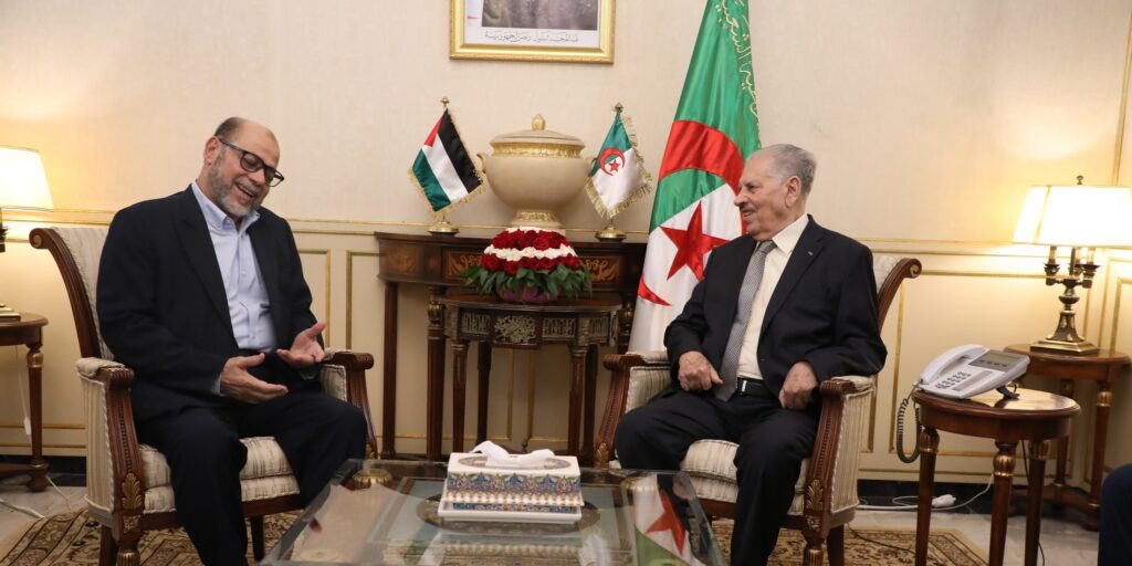 استقبل، صالح قوجيل، رئيس مجلس الأمة، الإثنين، بمقر مجلس الأمة، الدكتور موسى أبو مرزوق، الرئيس الأسبق لحركة المقاومة الإسلامية “حماس”، مسؤول مكتبها للعلاقات الخارجية، بمعية يوسف حمدان، ممثل الحركة في الجزائر.