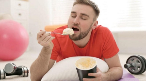 2- الشعور بالجوع: يفترض المرء أنه عندما لا يتحرك كثيراً، فإن جسمه لن يطلب تناول مزيد من الطعام للحصول على الطاقة، وبالتالي ستقل شهيته للأكل. ولكن الأمور لا تجري كذلك ألبتة، وكثيراً ما يعاني منْ لا يمارسون الرياضة من زيادة الشهية للأكل؛ لأن الواقع أنه حتى لو كان المرء ليس نشيطاً بدنياً، فإن جسمه سينتج كثيراً من هرمون “الغريلين، وهو الهرمون الذي يصنع الشعور بالجوع. ومعظم الدراسات في هذا الشأن، تشير إلى أن ممارسة التمارين الرياضية تقلل من مستويات هرمون (الغريلين) الذي يحفز الشهية، وتزيد من مستويات هرمون “الليبتين” المثبط للشهية. ولكن تجدر ملاحظة أن ذلك يحدث عند ممارسة الجهد البدني الجيد، الذي يتطلب حرق المزيد لإنتاج السعرات الحرارية. وهي الممارسة التي تميل إلى قمع الشهية. في حين أن ممارسة التمارين منخفضة الشدة، يمكن أن تجعلك تشعر بالجوع بسرعة. لذا كلما زادت الشدة عند ممارسة الرياضة، زادت كمية الدم التي يتم سحبها من القناة الهضمية نحو العضلات، ويقل الشعور بالجوع”.