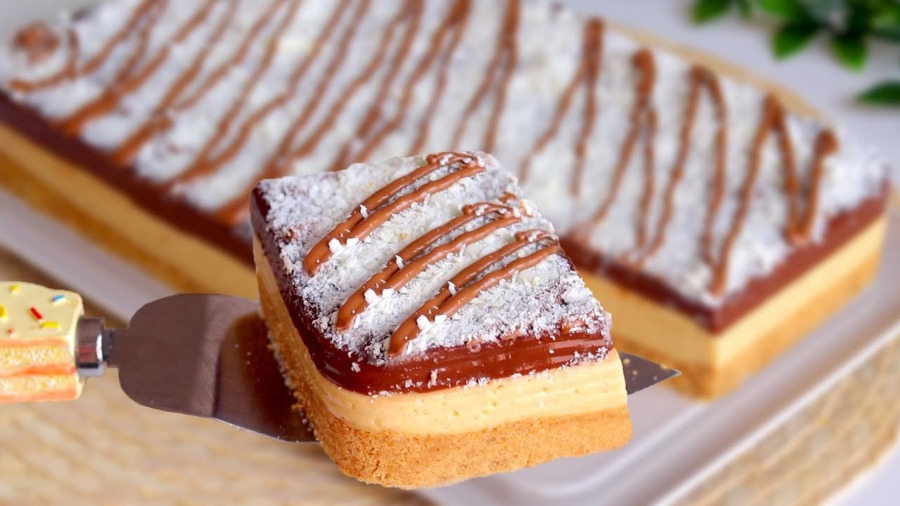 تزين بالأخير بالشوكولاطة البيضاء المبشورة وخطوط من الشوكولاطة بالحليب المذابة.