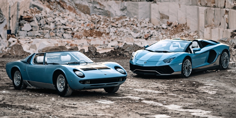 لم تختر لامبورغيني مصدر إلهامها عشوائياً، بل من نسخة مميزة جداً من ميورا من عام 1968 تتميز بلون أزرق يسمى Azzuro Flake، وتحصل أفينتادور Ultimae Roadster على أجزاء كاربون فايبر بارزة تزيد من تميزها.