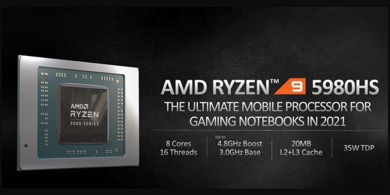 أيضاً تأتي الإصدارات المميزة من السلسلة Ryzen 9 5980HX و 5980HS بعدد 8 من الأنوية وعدد 16 من المسارات، مع سرعة تصل إلى 4.8 GHz، وبقدرة أعلى من 45W في رقاقة Ryzen 9 5980HX و35W في رقاقة.