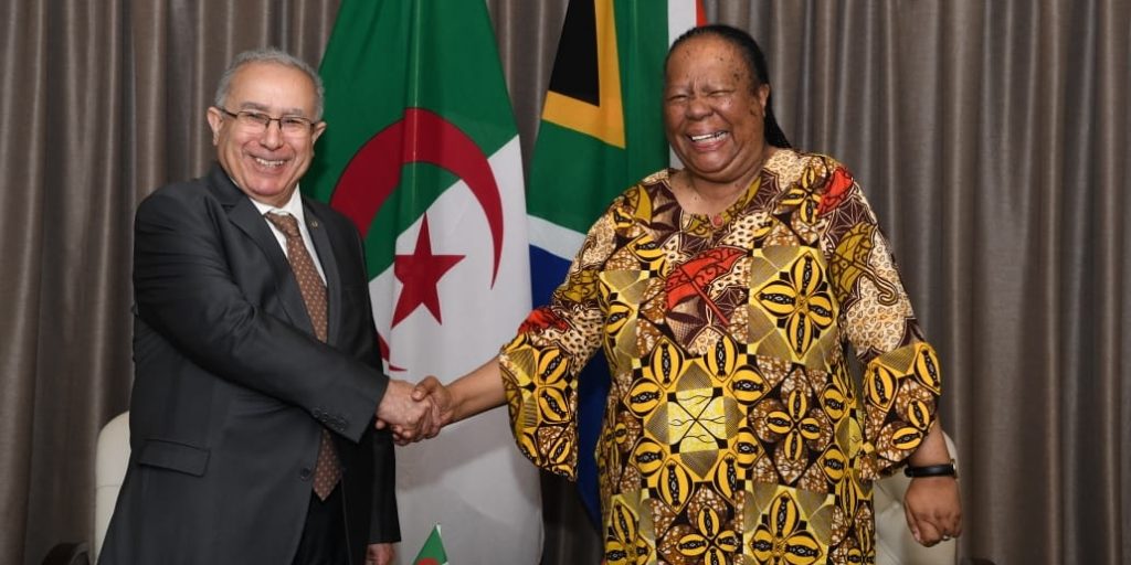 استعرض وزير الشؤون الخارجية والجالية الوطنية بالخارج، رمطان لعمامرة، مع نظيرته من جمهورية جنوب إفريقيا، العلاقات التاريخية المتينة والمتميزة بين البلدين والشعبين الشقيقين وتطلعات الطرفين إلى تعزيز طابعها الاستراتيجي في سياق استكمال التحضير للدورة السابعة للجنة المشتركة العليا التي ستلتئم بالجزائر تحت رئاسة قائدي البلدين، الرئيس عبد المجيد تبون وأخيه الرئيس سيريل رامافوزا الذي سيقوم قريبا بزيارة دولة إلى الجزائر.