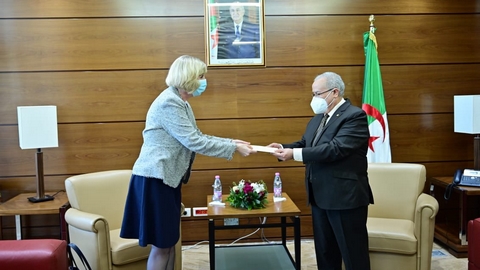 استقبل وزير الشؤون الخارجية والجالية الوطنية بالخارج، رمطان لعمامرة، الإثنين، السيدة إليزابيث مور أوبين، التي سلمته نسخا من أوراق اعتمادها بصفتها سفيرة فوق العادة ومفوضة للولايات المتحدة الأمريكية، لدى الجمهورية الجزائرية الديمقراطية الشعبية، حسب ما أفاد به بيان للوزارة.