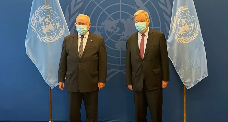 عقد وزير الشؤون الخارجية والجالية الوطنية بالخارج، رمطان لعمامرة، أمس السبت، جلسة عمل مع الأمين العام للأمم المتحدة، أنطونيو غوتيريش.