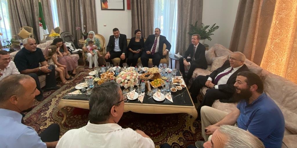 والتقى لعمامرة، في ختام زيارة العمل التي قام بها إلى جمهورية أذربيجان، بصفته مبعوثا خاصا لرئيس الجمهورية، بأفراد من الجالية الجزائرية المقيمة بهذا البلد بإقامة الجزائر، بحضور سفير الجزائر المعتمد لدى أذربيجان عبد الوهاب عصمان. وأعرب الوزير لعمامرة، في هذا الصدد عن اعتزازه لما لمسه من علاقات أخوة وتضامن بين أفراد الجالية الجزائرية في أذربيجان، وكذا الاحترام والسمعة الطيبة التي يحظون بها في هذا البلد. واستمع لعمامرة، لاهتمامات وانشغالات أفراد الجالية التي شملت جميع الفئات العمرية، مشيدين بالظروف الجيدة لإقامتهم واندماجهم في المجتمع الأذربيجاني، كما نوّهوا بالجهود التي تقوم بها السلطات لتمكين مصالح السفارة حديثة النشأة من تقديم جميع الخدمات القنصلية.