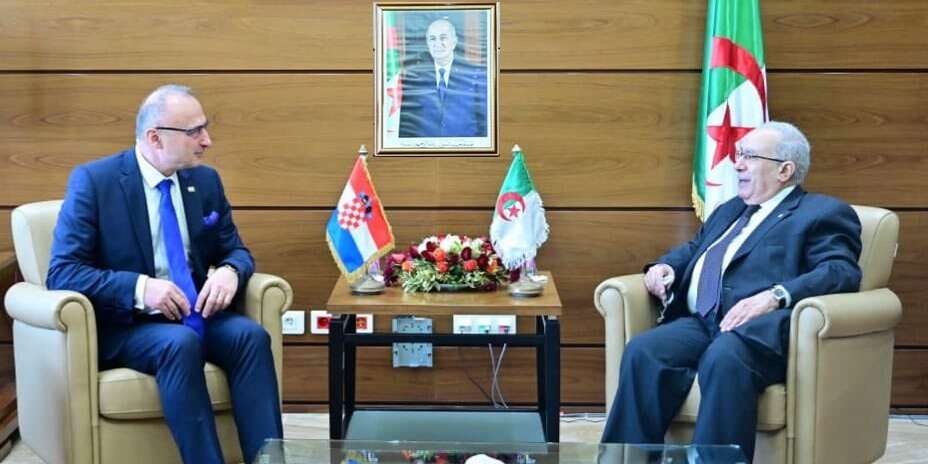 وعقد وزير الشؤون الخارجية والجالية الوطنية بالخارج، رمطان لعمامرة، بمقر الوزارة، جلسة عمل مع وزير الشؤون الخارجية والشؤون الأوروبية لجمهورية كرواتيا، اجوردان جرليك رادمان، الذي يقوم بزيارة إلى الجزائر تدوم يومين. وتمحورت المحادثات، حسب بيان لوزارة الخارجية، حول سبل وآليات تعزيز العلاقات الثنائية بين البلدين في كافة المجالات، لا سيما التعاون الاقتصادي، بالإضافة إلى القضايا الإقليمية والدولية ذات الاهتمام المشترك. وتوسّعت المباحثات إلى وفدي البلدين، حيث تم إجراء تقييم شامل لوضع العلاقات الثنائية وسبل تعزيزها بما يحقق الأهداف المشتركة المنشودة. وبهذه المناسبة، تم التوقيع على مذكرة تفاهم للتعاون بين المعهد الدبلوماسي والعلاقات الدولية لوزارة الشؤون الخارجية والجالية الوطنية بالخارج والأكاديمية الدبلوماسية لوزارة خارجية كرواتيا.