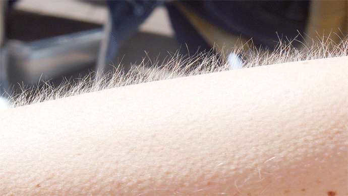 الشعور بالقشعريرة هو تغير مفاجئ في درجة الحرارة (كالتعرض لنسيم بارد خلال يوم مشمس) ما يجعل الأشعار تنتصب مؤقتاً ثم ترتخي معيدة الطبقة الماصة إلى مستواها الطبيعي.