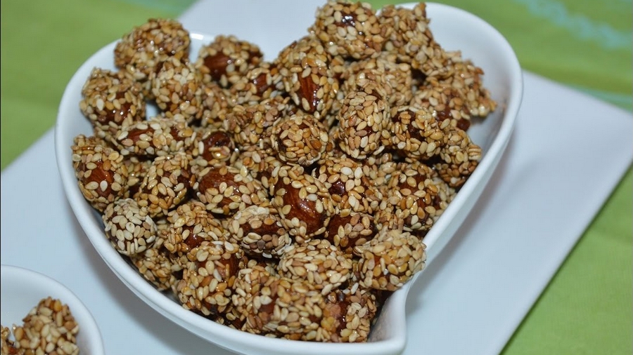 كمية من الجلجلان المناسبة لتغطية اللوز
