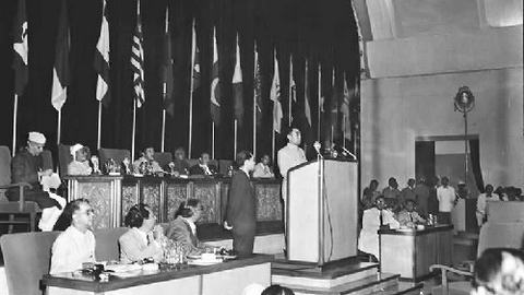 وعقد المؤتمر الأفرو-آسيوي في مدينة باندونغ، بأندونيسيا، خلال الفترة من 18 إلى 24 أبريل عام 1955، بمشاركة قرابة 600 منتدب، إلى جانب رؤساء ورؤساء حكومات ل29 دولة آسيوية وإفريقية، من أبرزهم الرئيس الاندونيسي أحمد سوكارنو، ورئيس الوزراء الهندي جواهر لال نهرو، و الرئيس المصري جمال عبد الناصر الذين رافعوا من أجل تأييد المبادئ الأساسية لحقوق الإنسان وحق تقرير المصير وشجب التمييز العنصري وإدانة الاستعمار ووجوب التخلص منه.