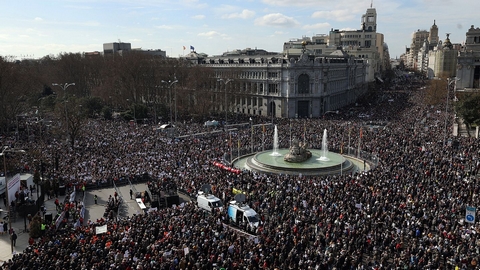 تدفق مئات الآلاف من المواطنين الإسبان إلى شوارع مدريد للانضمام إلى أكبر تظاهرة حتى الآن ضد إدارة الحكومة الإقليمية للعاصمة للمطالبة بتحسين خدمات الرعاية الصحية.