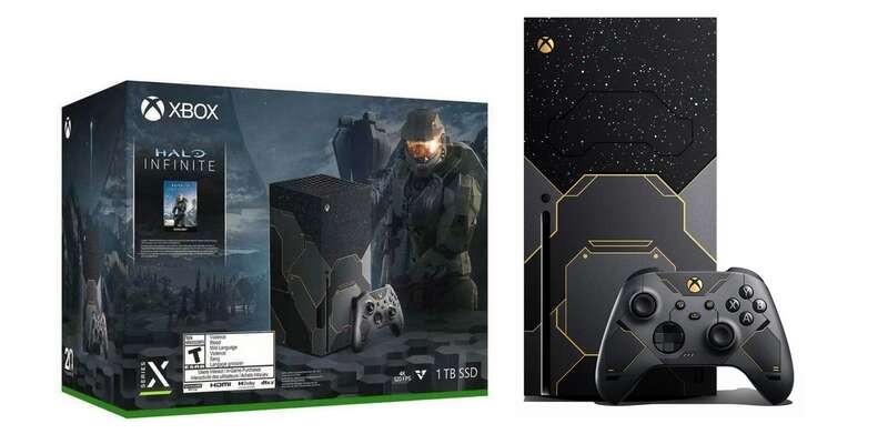 صممت الأجهزة الجديدة بثيم Halo للإحتفال بالذكرى السنوية لإطلاق Halo Infinite، وتتضمن مجموعة Xbox Series X _ Halo Infinite جهاز ألعاب Xbox Series X بتصميم Halo مع ذراع تحكم وأيضاً نسخة من اللعبة.