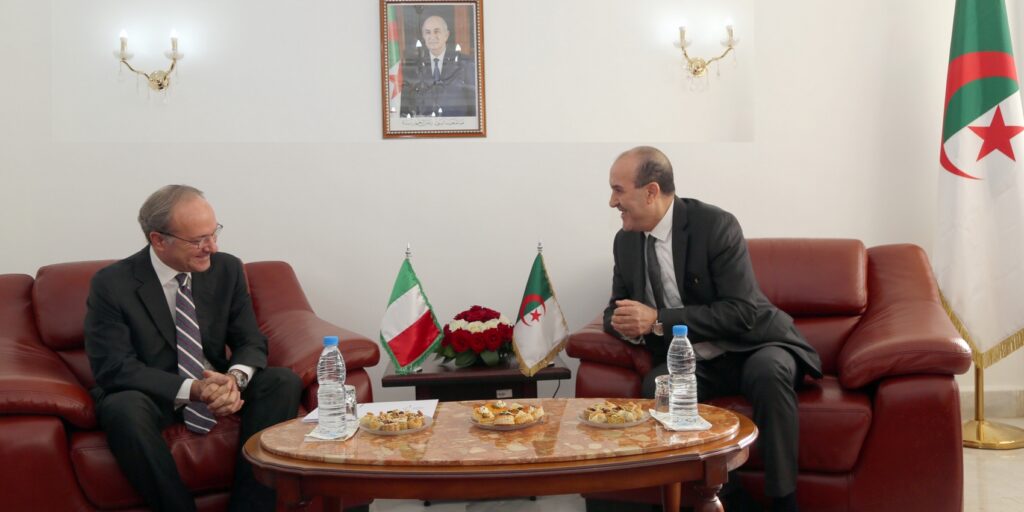 استقبل، السبت، السيد وزير النقل، كمال بلجود، بمقر الوزارة، السيد Giovanni Pugliese سفير الجمهورية الإيطالية بالجزائر، مرفوقا بالسيد المحافظ فوق العادة Matteo Uggetti للشركة الإيطالية Italiana per Condotte d_Acqua Spa.