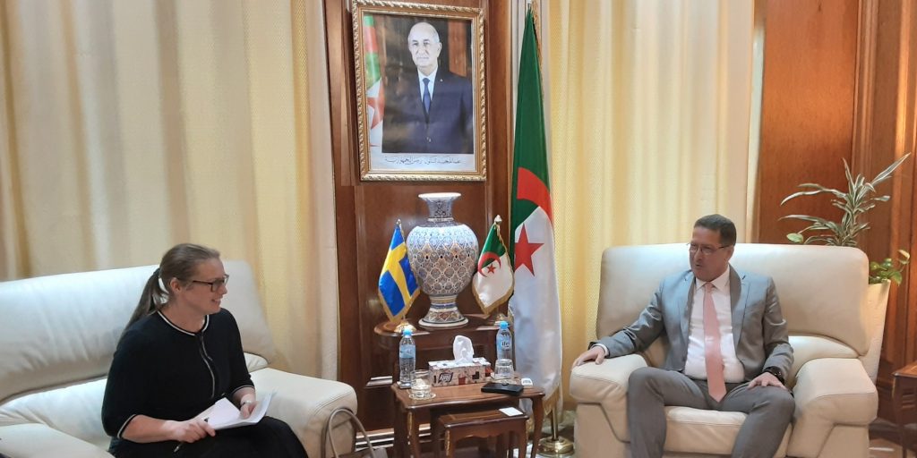 بحث الأمين العام لوزارة الطاقة والمناجم، عبدالكريم عويسي، رفقة سفيرة وزارة الخارجية السويدية المكلفة بتعزيز التجارة والاستثمارات المستدامة، سيسيليا إيكهولم، وبحضور سعادة سفير السويد لدى الجزائر مباحثات لتعزيز علاقات التعاون الثنائي في مجال الطاقة ولاسيما في مجال الطاقات المتجددة وتطوير الهيدروجين والتحول الطاقوي بالجزائر.