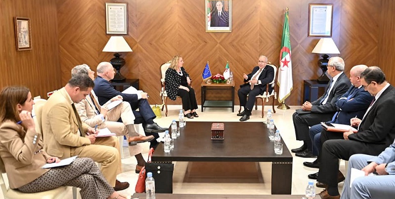 وتقوم المبعوثة الأوروبية، بزيارة عمل إلى الجزائر، في إطار الحوار السياسي حول مسائل السلم والأمن في إفريقيا، وحسب بيان للوزارة، فقد تمحورت المحادثات حول آفاق تعزيز التعاون بين الجزائر والاتحاد الأوروبي، من أجل ترقية السلم والأمن في إفريقيا، وبشكل خاص في منطقة الساحل. كما تطرق الجانبان، إلى الوضع السائد في مالي، على ضوء الجهود الرامية إلى إعادة تفعيل مسار اتفاق السلم والمصالحة في مالي المنبثق عن مسار الجزائر. وقد أشادت المبعوثة الخاصة للاتحاد الأوروبي، بالدور الهام للجزائر، التي تضطلع بمهمتين كونها قائدة الوساطة الدولية ورئيسة لجنة متابعة اتفاق السلام، وكذا التزامها الصادق من أجل مالي موحّدة ومستقرة وديمقراطية ومزدهرة.