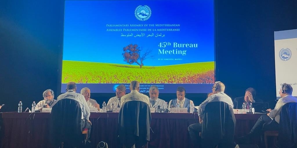 وجدد إلياس عاشور، في تدخله في الدورة الـ45 لمكتب برلمان المتوسط نابولي (إيطاليا)، دعم الجزائر الثابت للقضية الصحراوية العادلة وضد كل أشكال الاستعمار. هذا وقد درس مكتب برلمان البحر الأبيض المتوسط، مقترح تنظيم زيارة إلى مخيمات اللاجئين الصحراويين بتندوف، للوقوف على أوضاع اللاجئين الصحراويين. وعرف الاجتماع الخامس والأربعين لمكتب برلمان البحر الأبيض المتوسط، “دراسة ومناقشة عدة محاور منها التحديات الأساسية للأمن الإقليمي والنشاطات القادمة، والتهديدات التي تواجه الأمن الغذائي والطاقوي في المنطقة، والنشاطات القادمة من أجل دعم الاندماج الاقتصادي الجهوي، ومقاربة برلمان المتوسط حول مراجعة الميثاق العالمي للهجرة. جدير بالذكر، أن اجتماع، الإثنين، يأتي قبيل انعقاد مؤتمر دولي رفيع المستوى ينظمه برلمان المتوسط حول مكافحة الجريمة المنظمة العابرة للأوطان، وذلك بنابولي في الفترة من 20 إلى 22 جوان 2022.