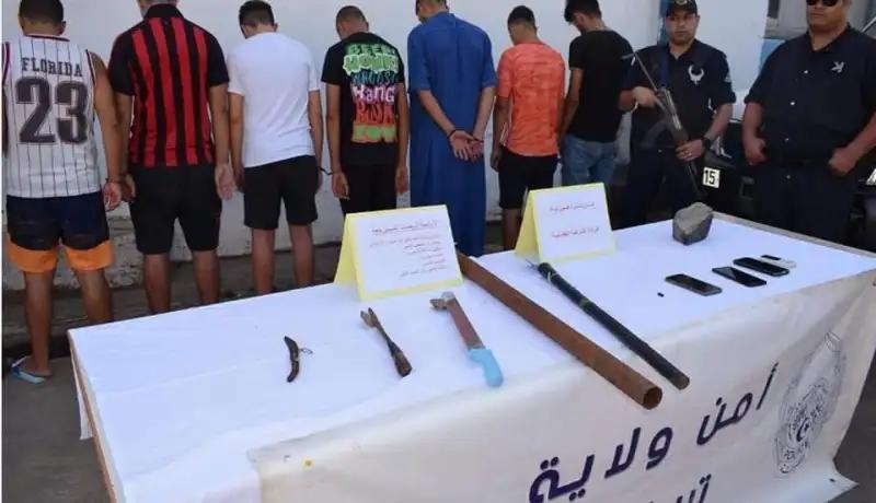 وتم خلال العملية، ضبط مجموعة من الأسلحة البيضاء من مختلف الأحجام بحوزة المعتدين.