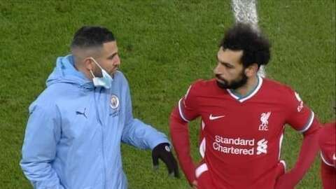 توجه الجزائري رياض محرز، مهاجم نادي مانشستر سيتي، إلى المصري محمد صلاح، نجم ليفربول، بعدما انتهت المواجهة التي جمعت بينهما، الأحد، بانتصار كتيبة بيب غوارديولا بأربعة أهداف مقابل هدف وحيد في ملعب “آنفيلد”، ضمن منافسات الأسبوع الـ(23) في الدوري الإنجليزي الممتاز لكرة القدم.