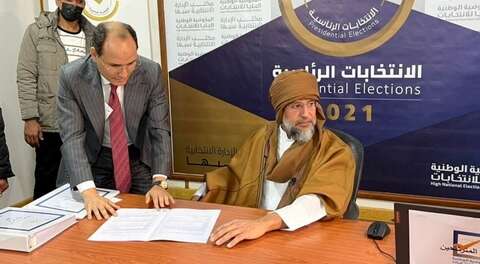 فيما تتصاعد التوترات السياسية في ليبيا، مع انطلاق معركة الطعون والتنافس ضمن الانتخابات الرئاسية المزمع عقدها في 24 ديسمبر المقبل، على الرغم من المخاوف التي باتت تحيط بتلك العملية، جدد سيف الإسلام القذافي الذي استبعد من السباق، الثلاثاء، موقفه المصمم على خوض تلك الانتخابات.