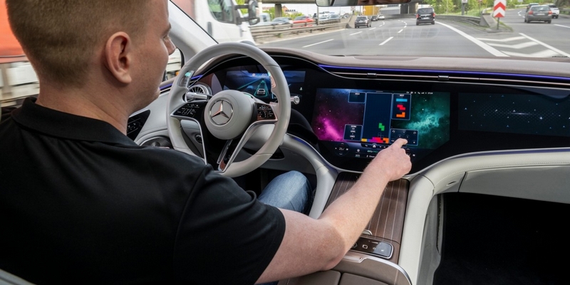 نظام مرسيدس Drive Pilot الجديد هو نظام مجهز للسيارات الإنتاجية المصرح باستخدامها على الطرق العامة، ويمكن للنظام العمل في على أقسام من الطريق السريع بكثافة مرور عالية ويمكنه تولي جميع مهام القيادة بسرعات تصل إلى 64 كم/س. وإذا تم استيفاء جميع الشروط، يمكن للسائق تنشيط Drive Pilot حيث يشرع النظام بالتحكم في سرعة السيارة ومسافة الأمان والمسار، بالإضافة للتعامل مع أي مواقف مرورية غير متوقعة دون الحاجة إلى أي مدخلات من السائق. يأخذ النظام في الاعتبار الأشياء التي تحدث طوال الوقت بالإضافة إلى قدرته على قراءة جميع إشارات المرور.