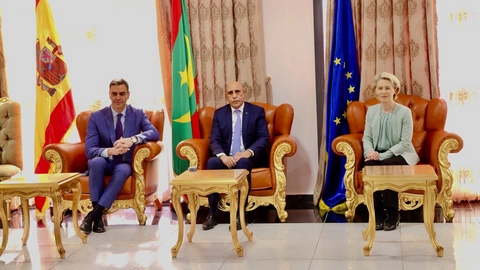في زيارة هي الثانية منذ تنصيب ولد الغزواني رئيسا لموريتانيا، وصل إلى نواكشوط رئيس الوزراء الإسباني بيدرو سانشيز، وبرفقته رئيسة المفوضية الأوروبية أورسولا فون دير لاين، لبحث مجموعة من القضايا بدا لافتا طغيان ملف “الهجرة غير الشرعية” عليها، رغم ما تم إعلانه من ملفات أخرى مهمة تناولتها مباحثات الأطراف الثلاثة، وفق اعلام محلي، الاحد.