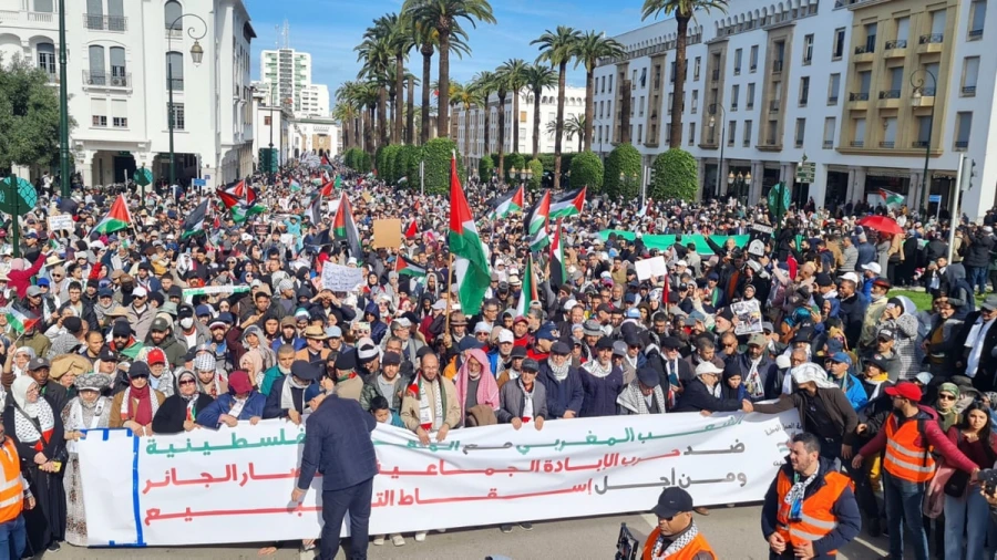 نظمت الجبهة المغربية لدعم فلسطين ومناهضة التطبيع, يوم وطني احتجاجي ضد التطبيع مع الكيان الصهيوني وتضامنا مع الشعب الفلسطيني, الذي يتعرض لأبشع أنواع الإبادة في ظل صمت دولي رهيب, السبت.