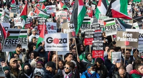 تظاهر نشطاء أمام مبنى الأمم المتحدة في نيويورك في ذكرى إقرار الأمم المتحدة لاتفاقية “الابادة الجماعية” في العام 1948، لمطالبة دول العالم بالضغط على الاحتلال لوقف الإبادة الجماعية بحق الشعب الفلسطيني في أسرع وقت ممكن، وإعلان وقف إطلاق النار في قطاع غزة.