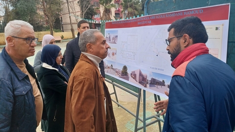 في حين كانت المحطة الرابعة بمتابعة أشغال إنجاز مطعم مدرسي بمدرسة رمضان حمود، حيث بلغت نسبة الإنجاز 15%، وقد شدد الوالي المنتدب على ضرورة الرفع من وتيرة الأشغال بزيادة عدد العمال والعمل بنظام 8×3.