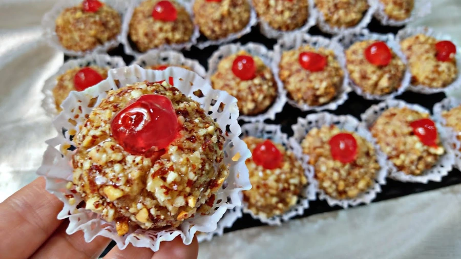 نضع حبات المشوك بالكيسات وبواسطة يد ملعقة خشبية نشكل ثقوب أعلى كل حبة مشوك، هذه الثقوب ستساعد المشوك بعد الطهي على تشرب العسل، ندخلهم لفرن مسخن مسبقا على درجة حرارة 170 درجة، عند أخذ اللون الذهبي من الأسفل نشعل النار من الأعلى ليأخذوا اللون الذهبي الجميل. مباشرة بعد اخراجهم من الفرن نشربهم بالعسل بوضع ملعقة عسل فوق كل حبة وبعد ان تبرد تماما نضيف قطرات فقط حوالي ربع ملعقة عسل لكي تكتسب اللمعان، بعدها نغير الكيسات ونضعهم بأخرى أصغر ومناسبة لحبات المشوك ونزينها بنصف حبة كرز.