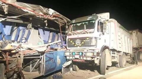 لقي 9 أشخاص مصرعهم، وأصيب 6 آخرون، إثر تصادم حافلة ركاب بسيارة نقل بمقطورة، على طريق الوردة البيضاء المتجه إلى محور 30 يونيو بالسويس في مصر.