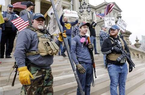 شهدت ولاية ميشيغان الأمريكية مظاهرة شارك فيها الآلاف، جلهم من أنصار الرئيس دونالد ترامب، يحمل بعضهم أسلحتهم، للتنديد بأوامر البقاء في المنازل، لوقف انتشار فيروس كورونا المستجد.