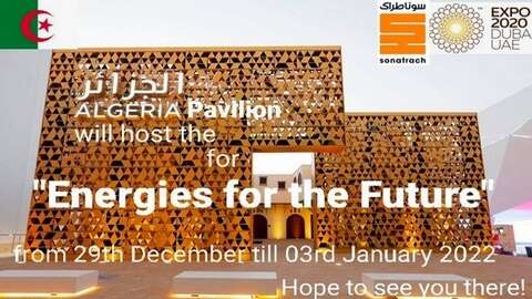 وجاء في منشور بالصفحة الرسمية للجناح على فايسبوك : “يستضيف جناح الجزائر سوناطراك لمدة أسبوع، طاقات الجزائر من 29 ديسمبر 2021 إلى غاية 3 يناير 2022”.