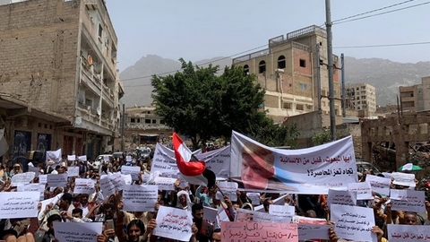 واتهم زكريا الشرعبي، أحد منظمي الاحتجاجات “جماعة الحوثي بالتنصل عن التزاماتها ضمن الهدنة الأممية التي تتضمن فتح طرق محافظة تعز، رغم تشغيل مطار صنعاء وميناء الحديدة (خاضعان لسيطرة الجماعة)”.