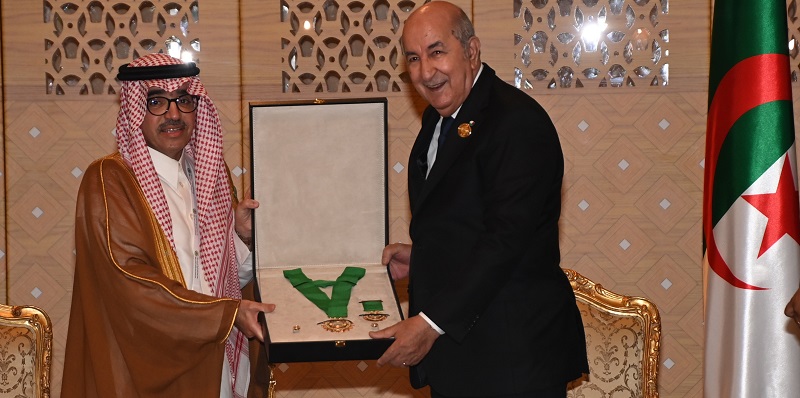 وقدم القلادة للرئيس تبون، رئيس المنظمة بندر بن فهد آل فهيد.